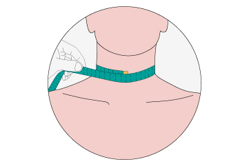 Place the tape measure on the neck exactly where join the trapezius, then take the circumference